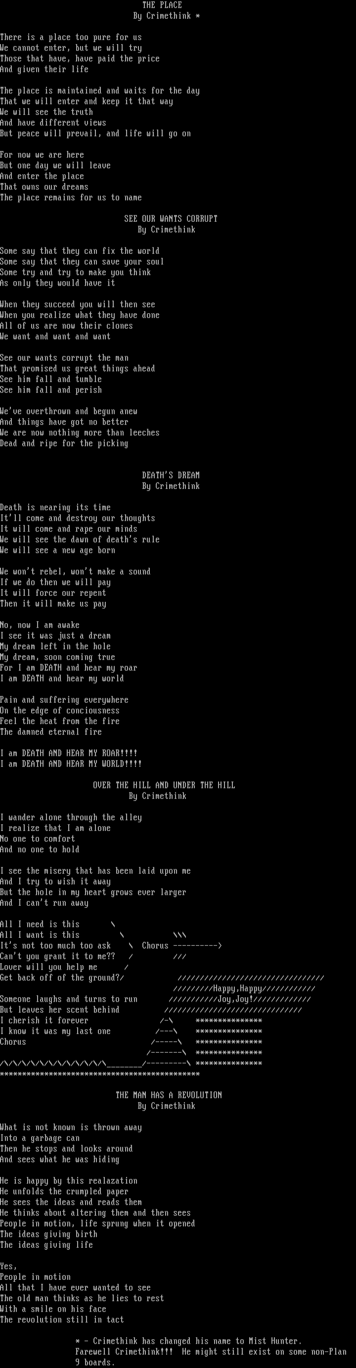 Farewell Crimethink!!! He might still exist on some non-Plan