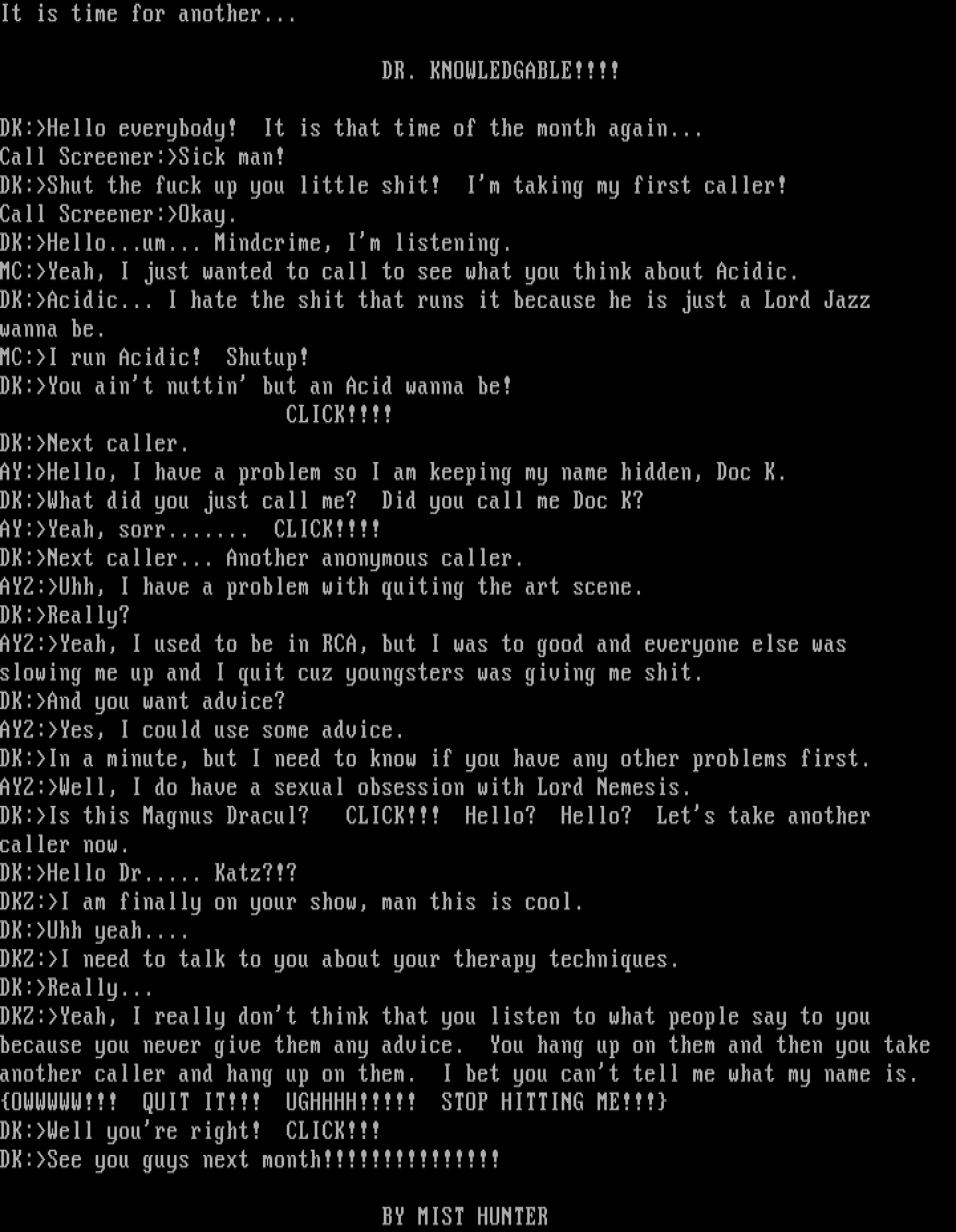 DK:Acidic... I hate the shit that runs it because he is just a Lord Jazz