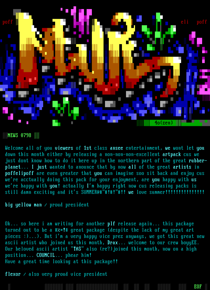 Our beloved ascii artist TAS also re?joined this month, now on a high