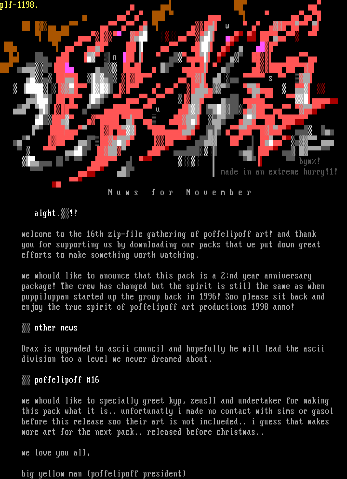 enjoy the true spirit of poffelipoff art productions 1998 anno!