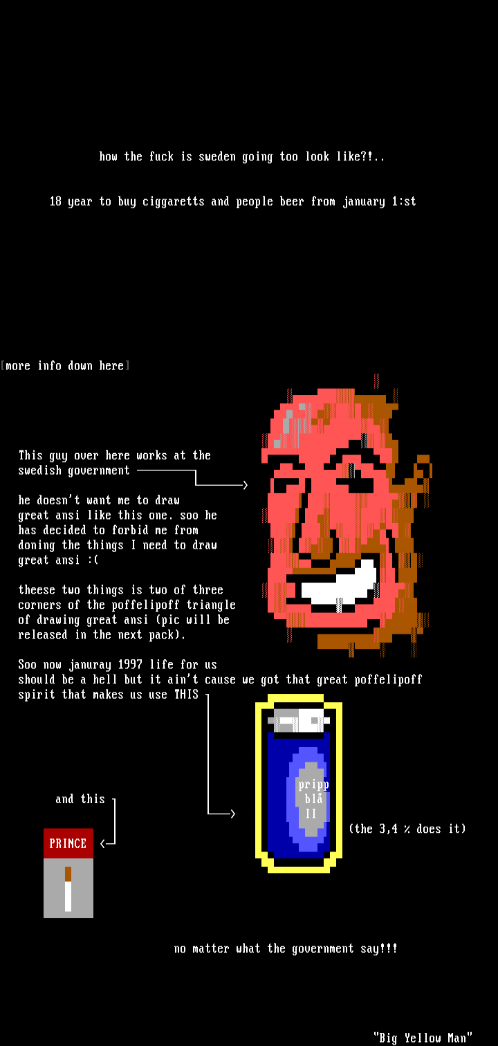 This guy over here works at the swedish government he doesnt want me to draw great ansi like this one. soo he