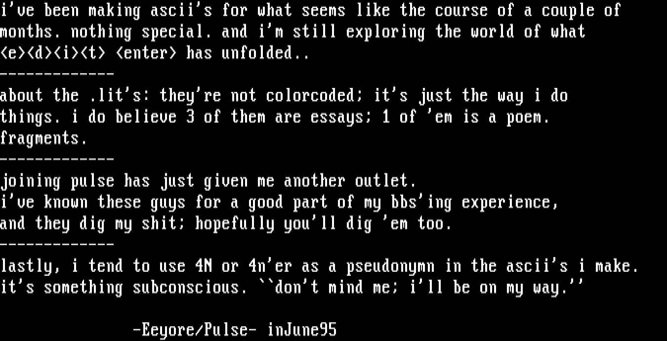 lastly, i tend to use 4N or 4ner as a pseudonymn in the asciis i make.