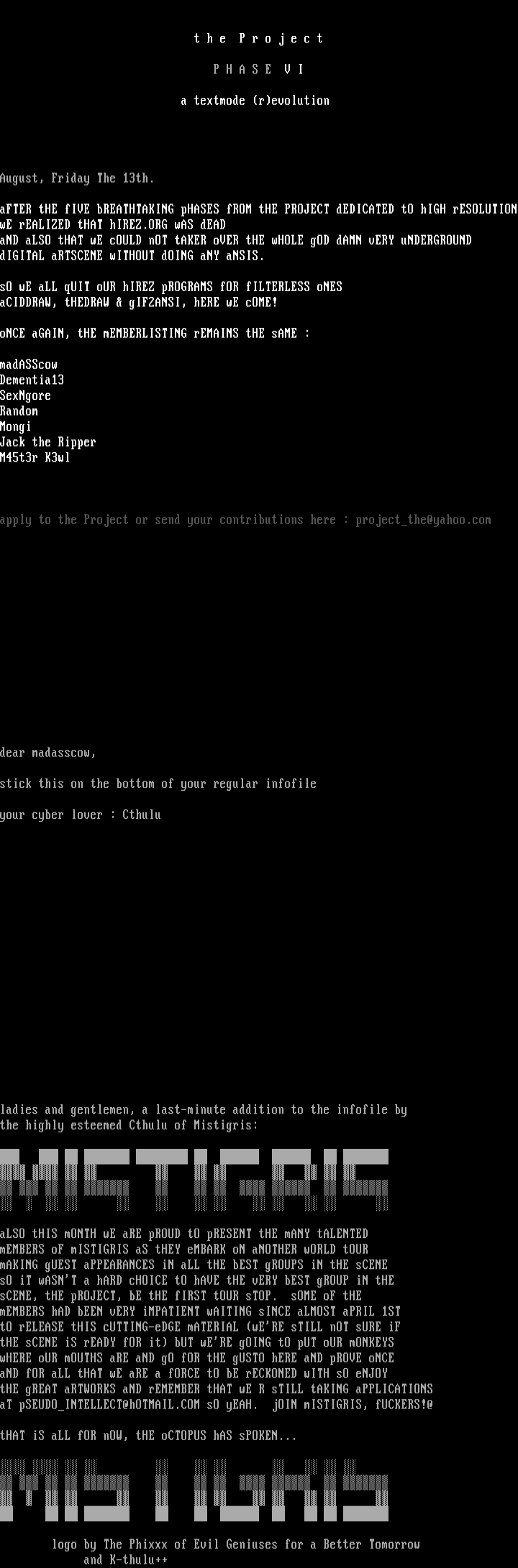 aT pSEUDOINTELLECT@hOTMAIL.COM sO yEAH. jOIN mISTIGRIS, fUCKERS!@