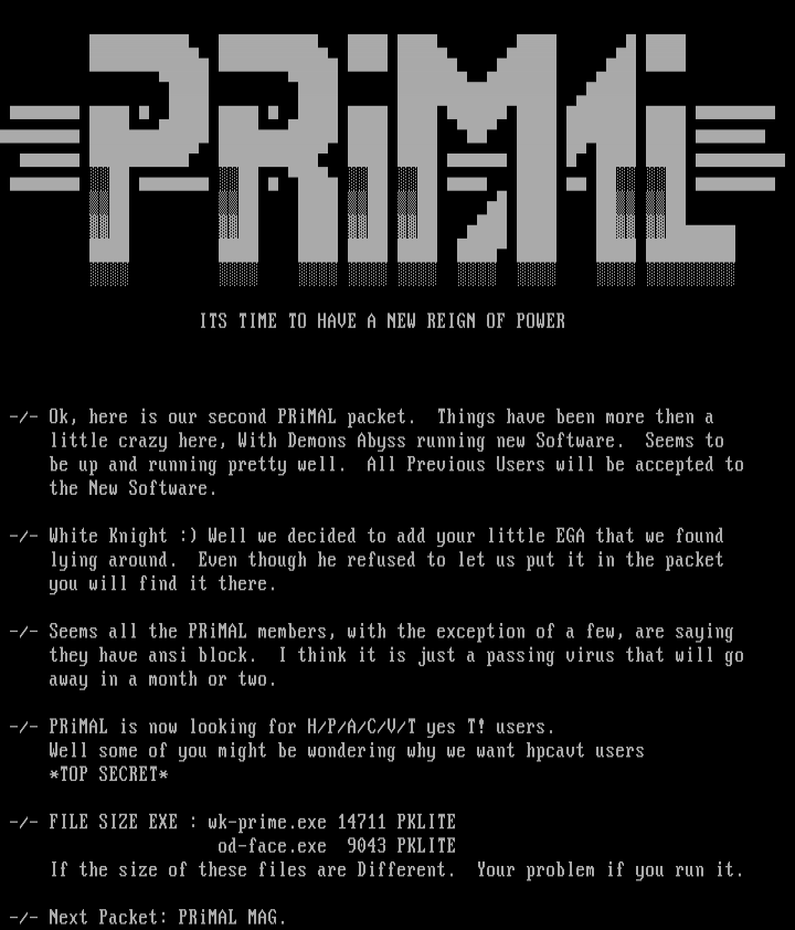 -/- Ok, here is our second PRiMAL packet. Things have been more then a