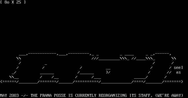 MAY 2OO3 -/- THE PRANA POSSE IS CURRENTLY REORGANIZING ITS STAFF, WERE AWAY