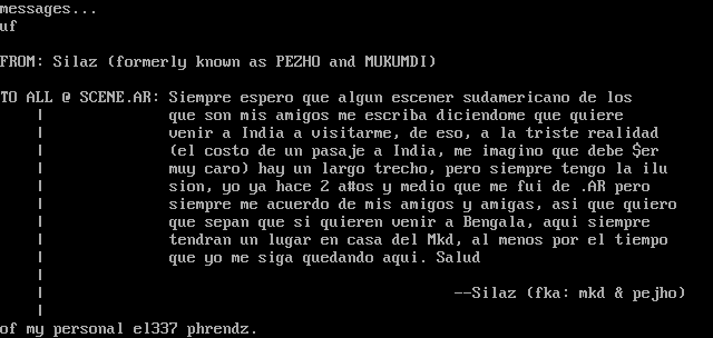 TO ALL @ SCENE.AR: Siempre espero que algun escener sudamericano de los