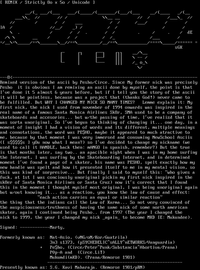 Remixed version of the ascii by Pesho/Circe. Since My former nick was precisely