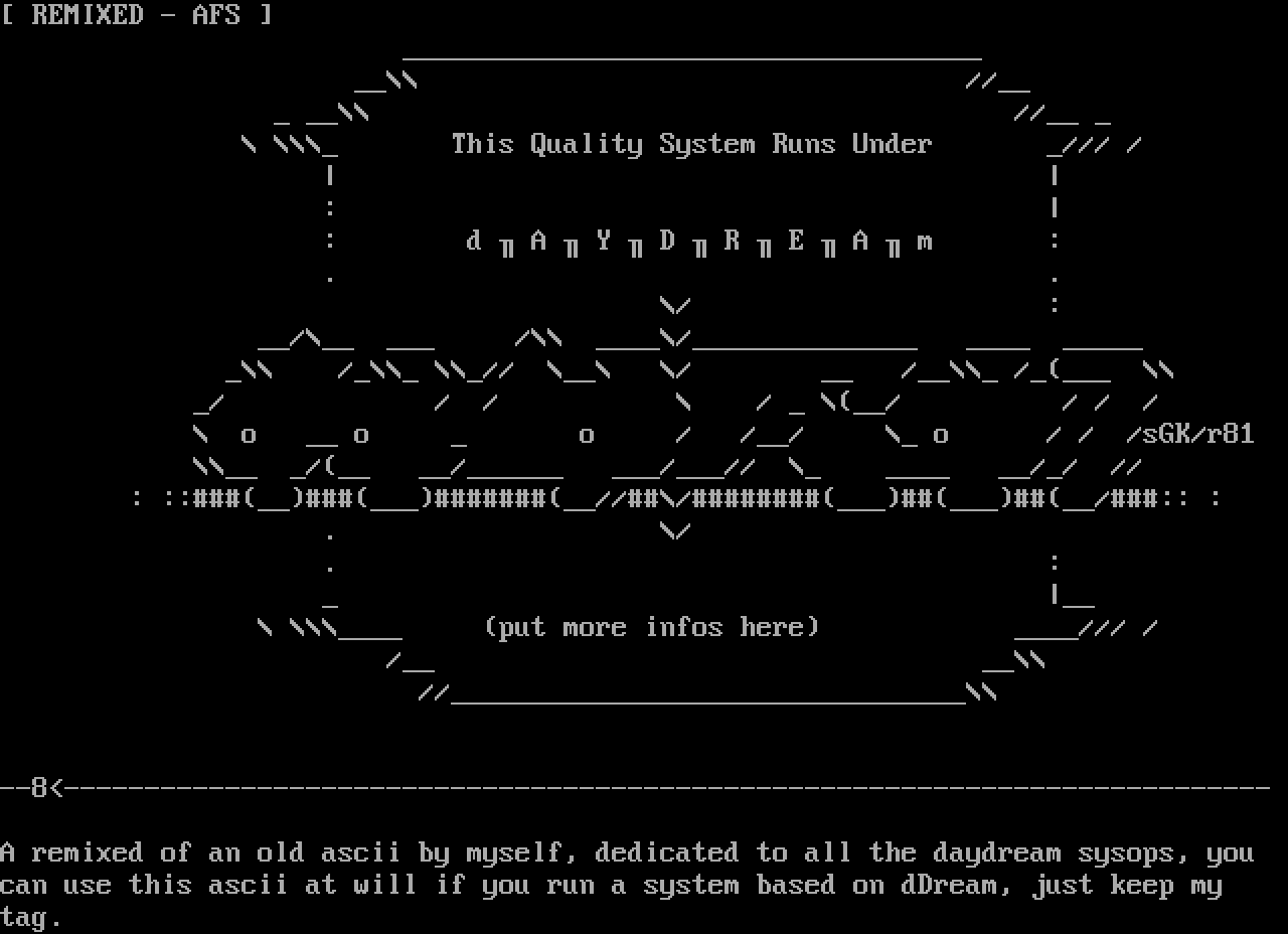 A remixed of an old ascii by myself, dedicated to all the daydream sysops, you