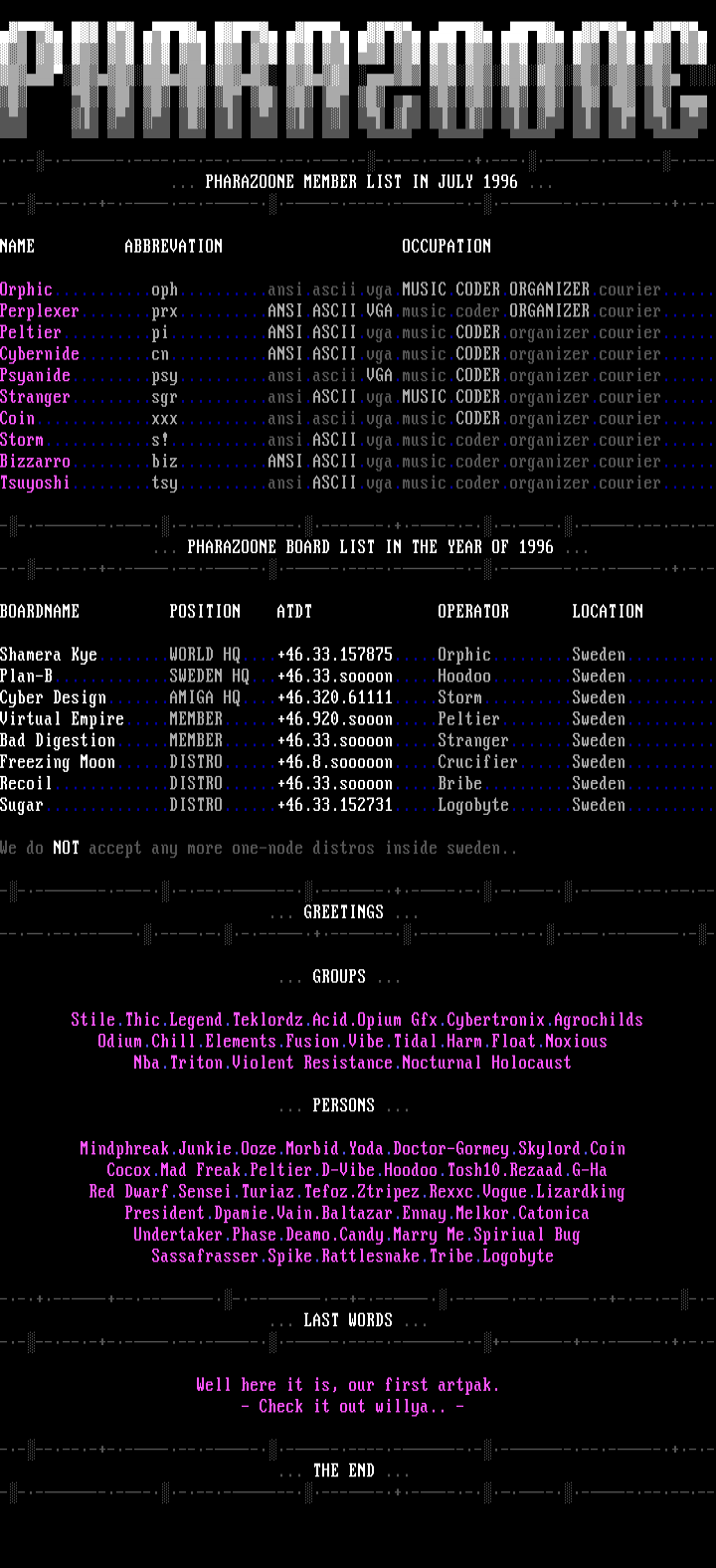 ------------------------------+-------------- ... PHARAZOONE MEMBER LIST IN JULY 1996 ...