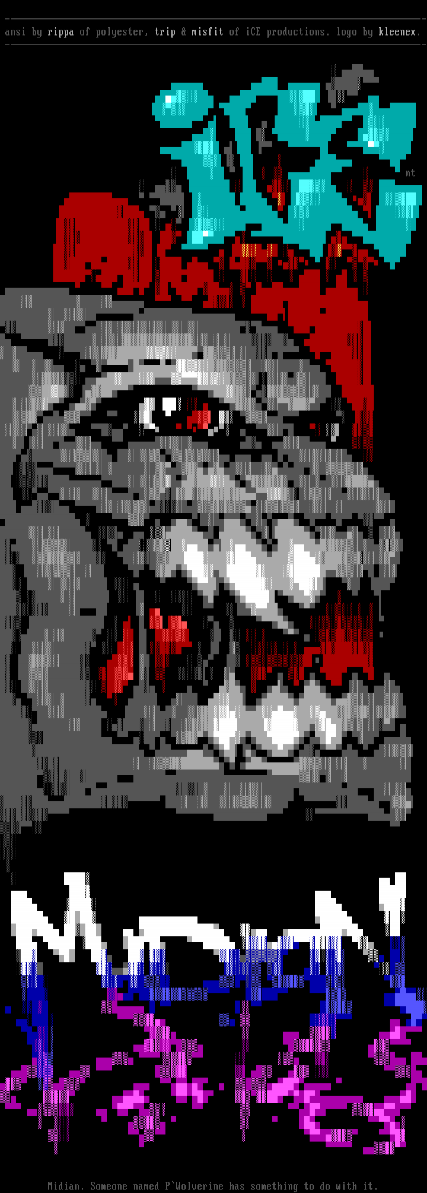 --- ansi by rippa of polyester, trip misfit of iCE productions. logo by kleenex.