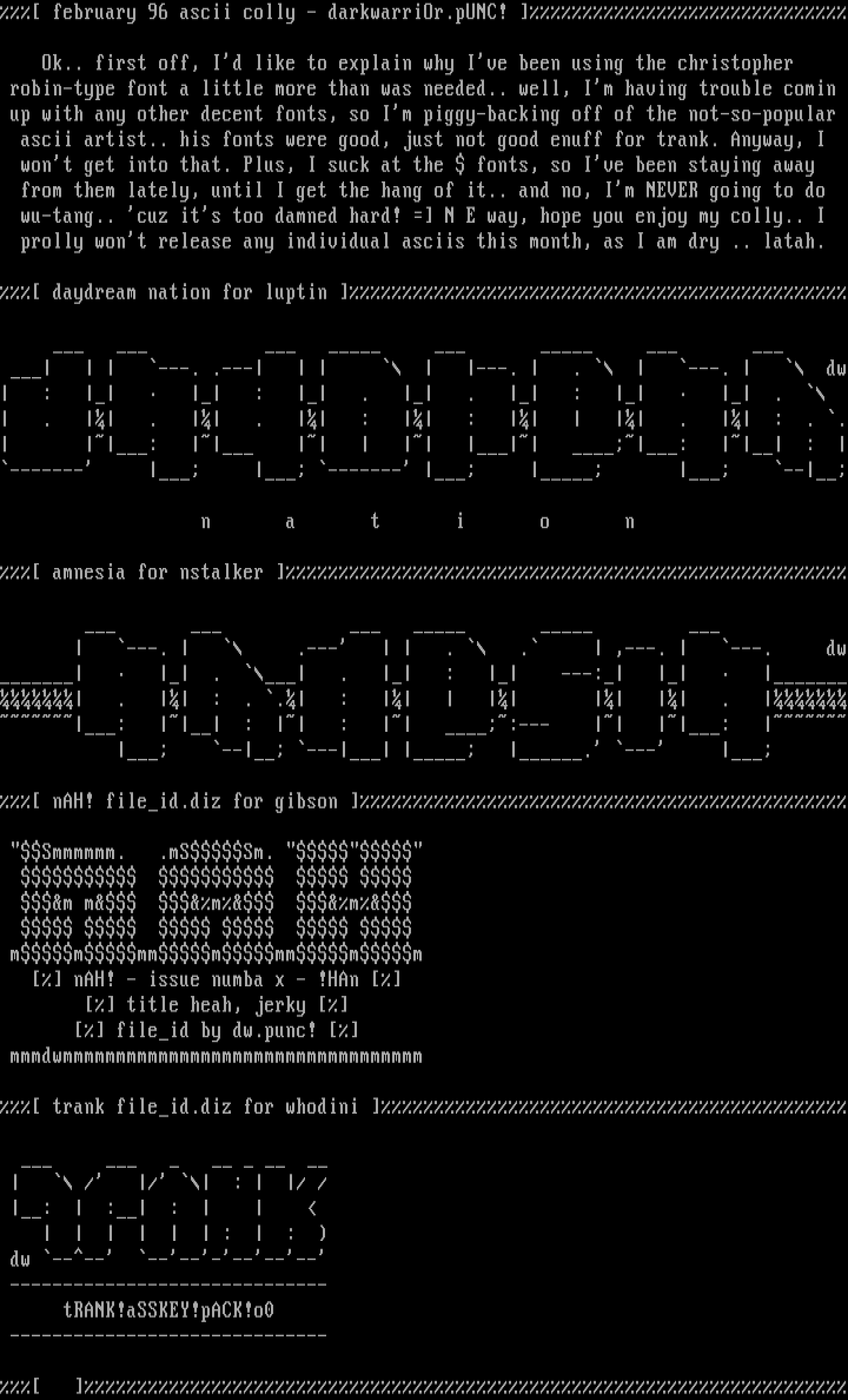 ascii artist.. his fonts were good, just not good enuff for trank. Anyway, I