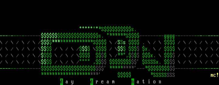 ---------------s. S---------gggg---------------- / / / /S /SSs . / / / / / / / / / / / / / x. / / / / / / / / / / / /, x. / / / / / / / / / / / , SSSSx. / / / /--------------- ------------------- SSSSSSSS mc! d a y d r e a m n a t i o n