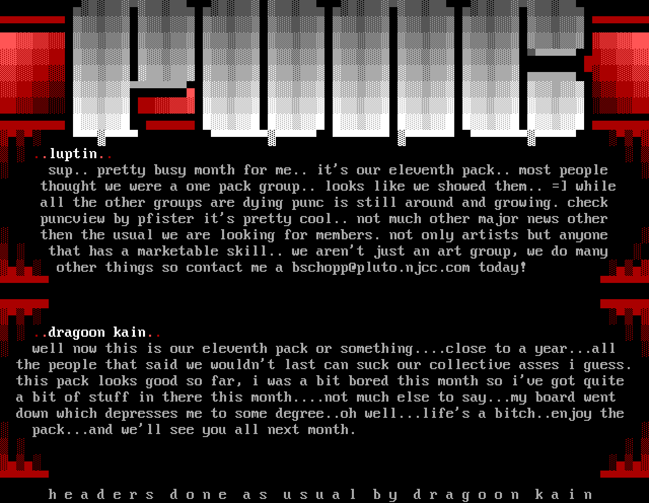 other things so contact me a bschopp@pluto.njcc.com today! ..dragoon kain.. well now this is our eleventh pack or something....close to a year...all the people that said we wouldnt last can suck our collective asses i guess.
