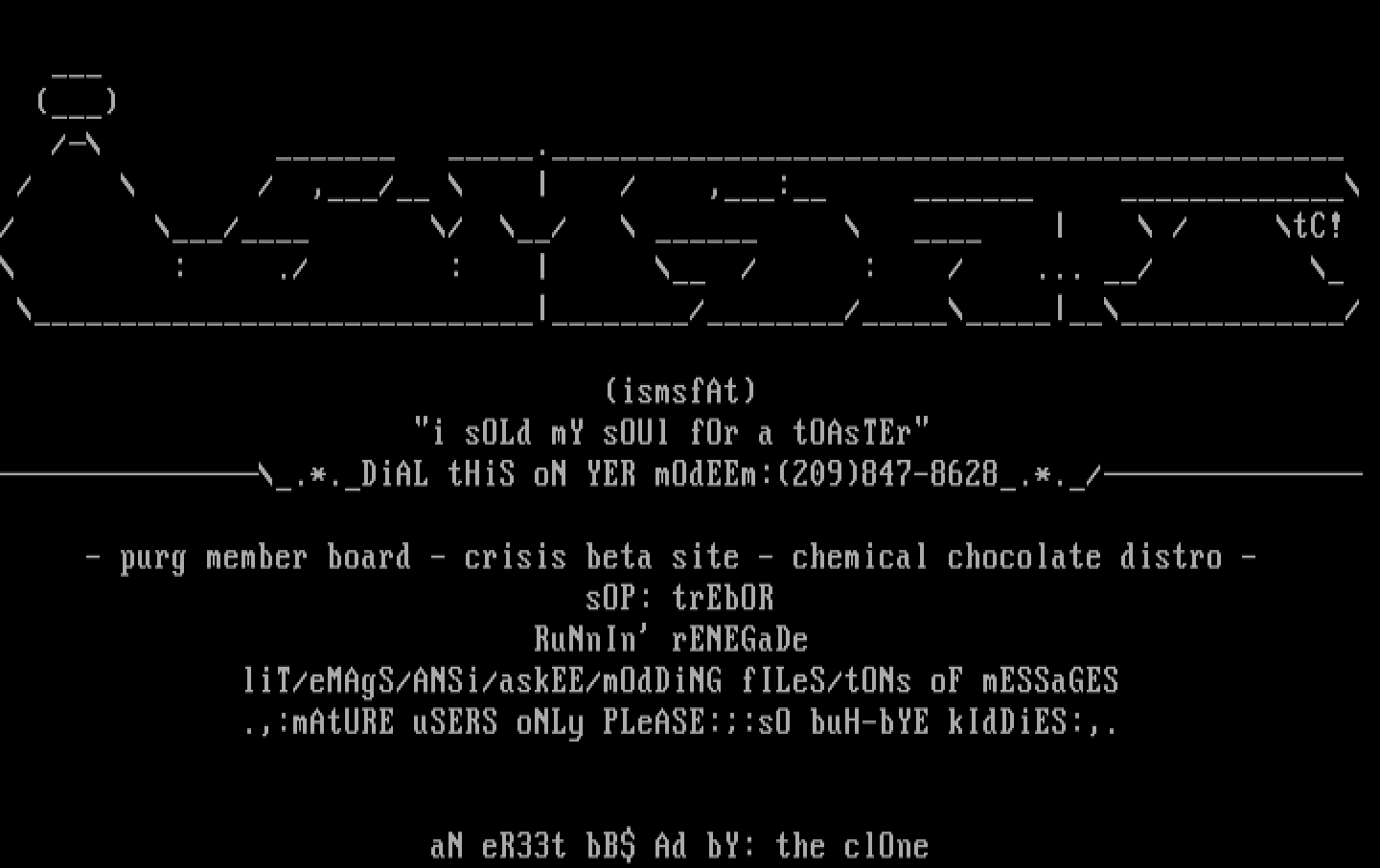 - purg member board - crisis beta site - chemical chocolate distro -