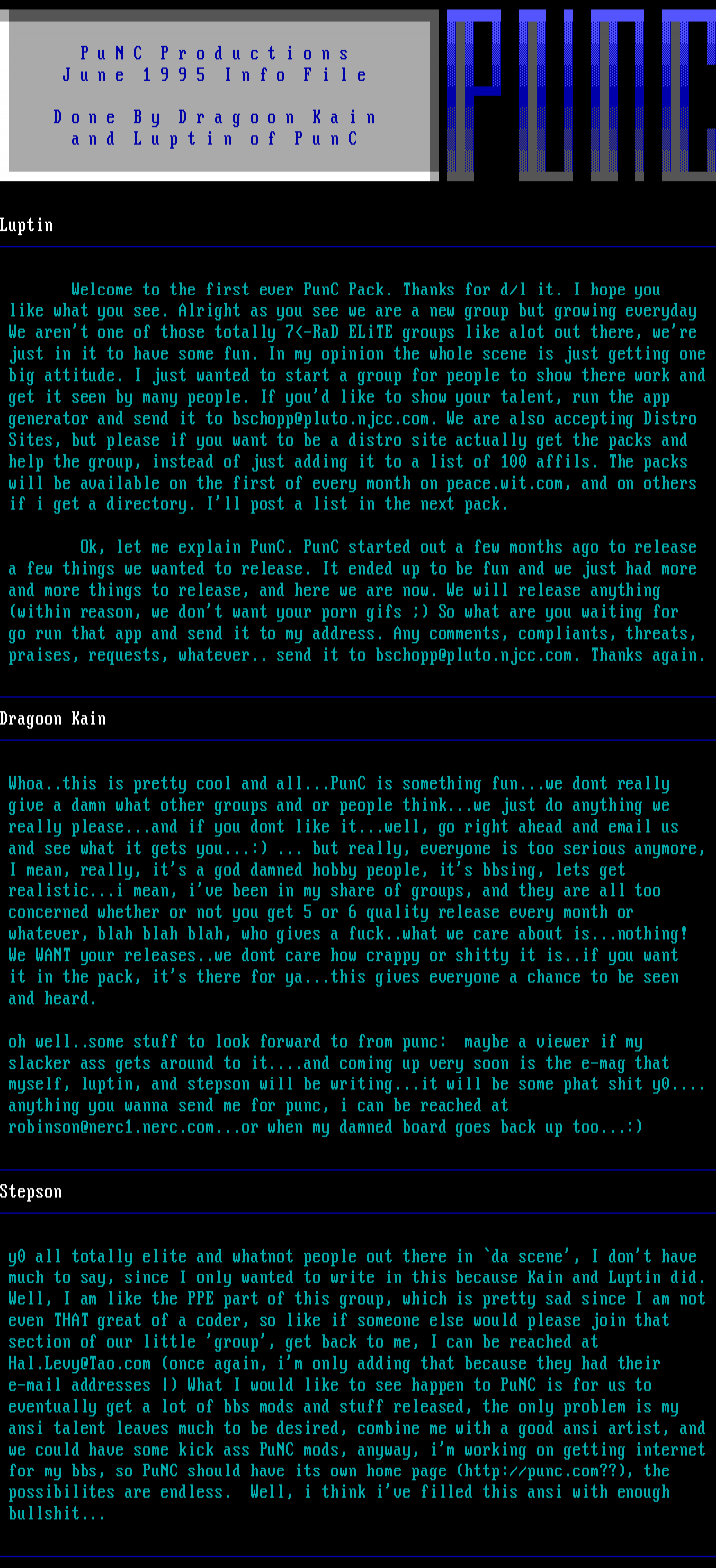 P u N C P r o d u c t i o n s J u n e 1 9 9 5 I n f o F i l e