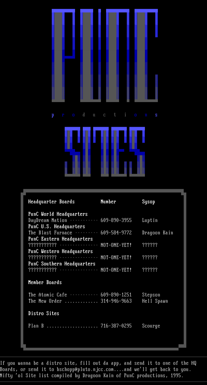 Nifty ol Site list compiled by Dragoon Kain of PunC productions, 1995.