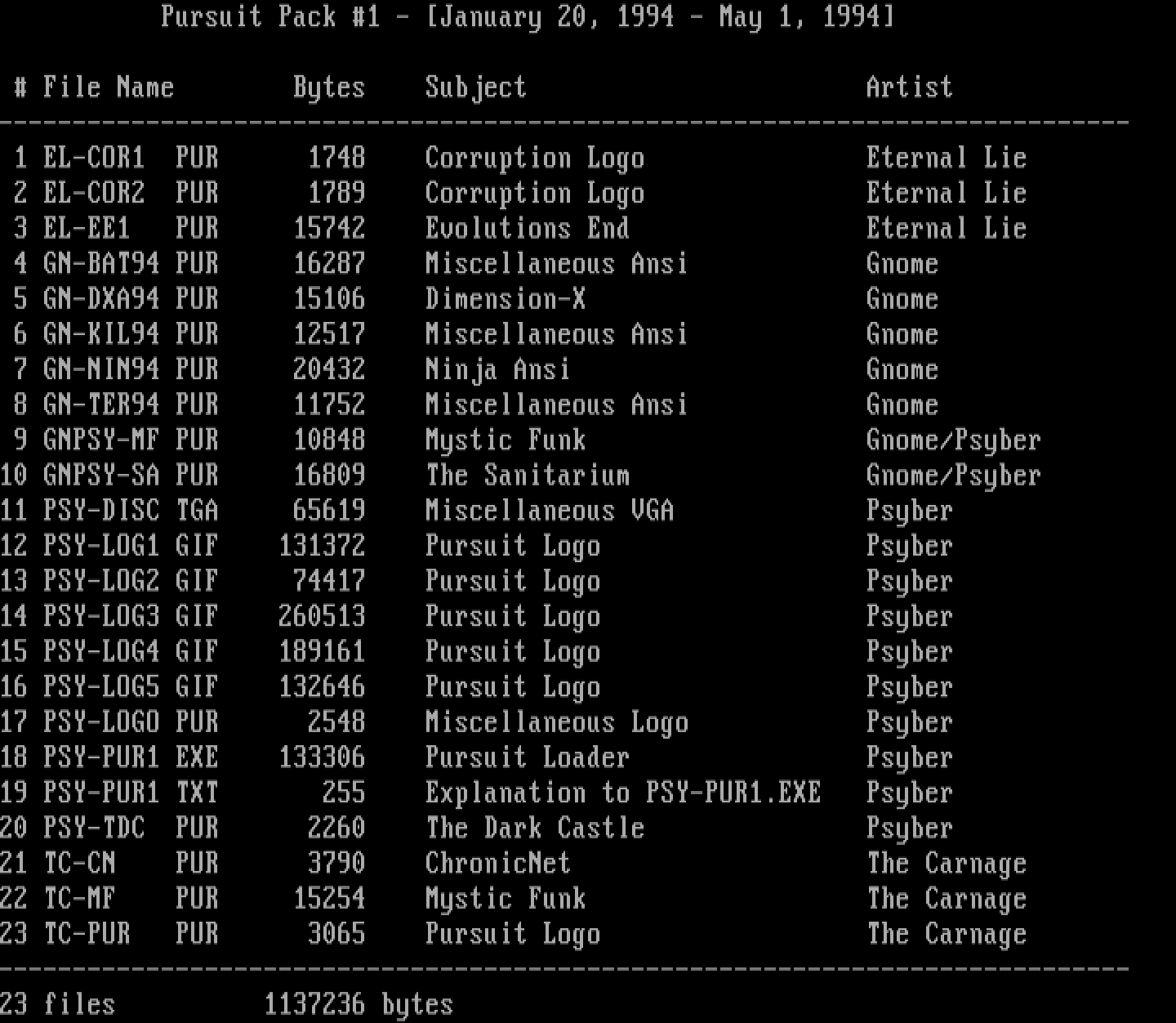 Pursuit Pack 1 - January 20, 1994 - May 1, 1994