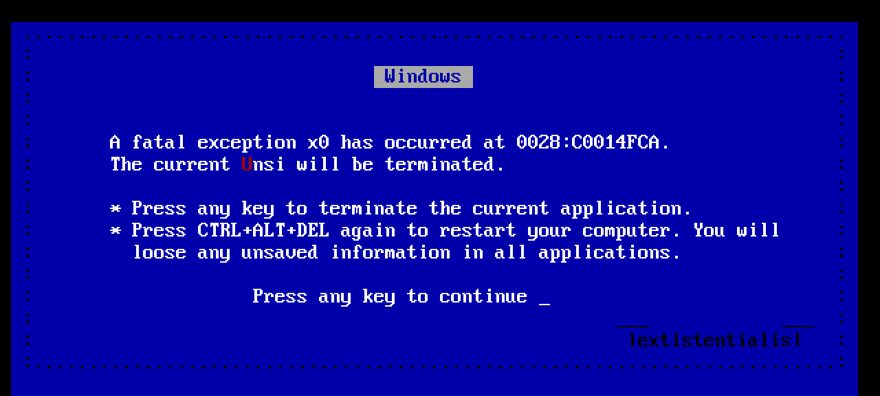 : A fatal exception x0 has occurred at 0028:C0014FCA. :