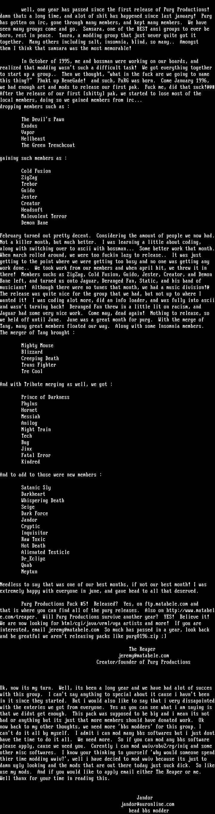 that is where you can find all of the purg releases. Also on http://www.matabele.com/treaper. Will Purg Productions survive another year? YES! Believe it!