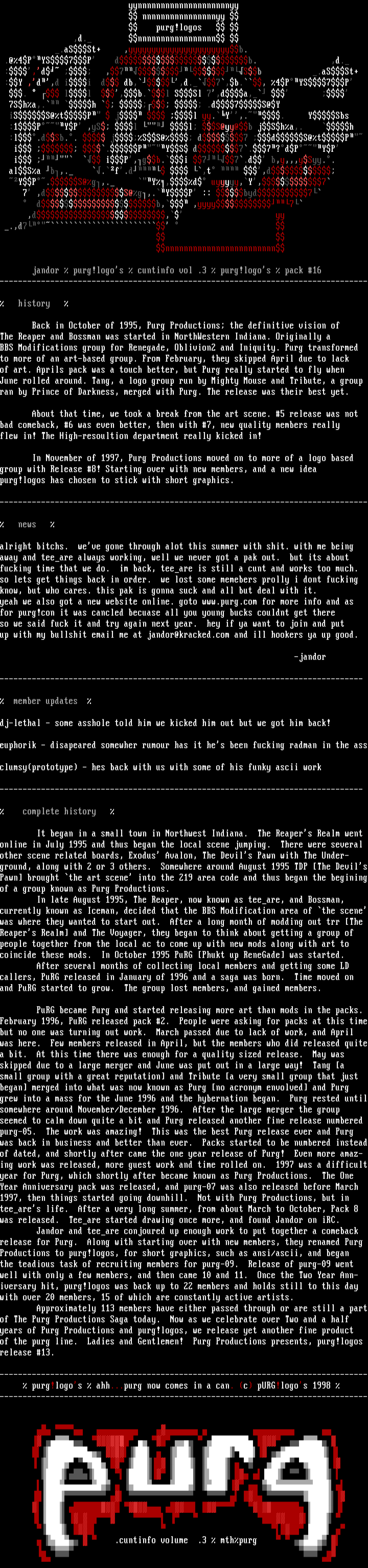 Productions to purg!logos, for short graphics, such as ansi/ascii, and began