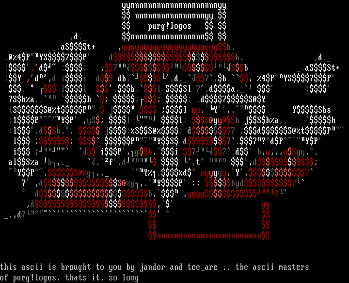 this ascii is brought to you by jandor and teeare .. the ascii masters