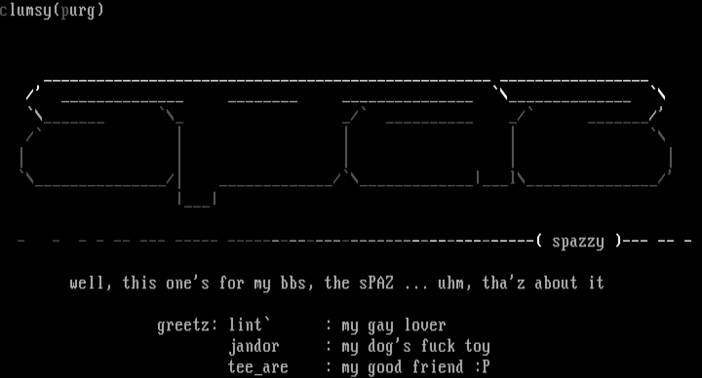 well, this ones for my bbs, the sPAZ ... uhm, thaz about it