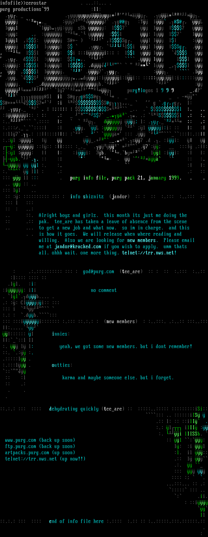 ::: yy ll ::: . purg info file, purg pack 21, january 1999. . .