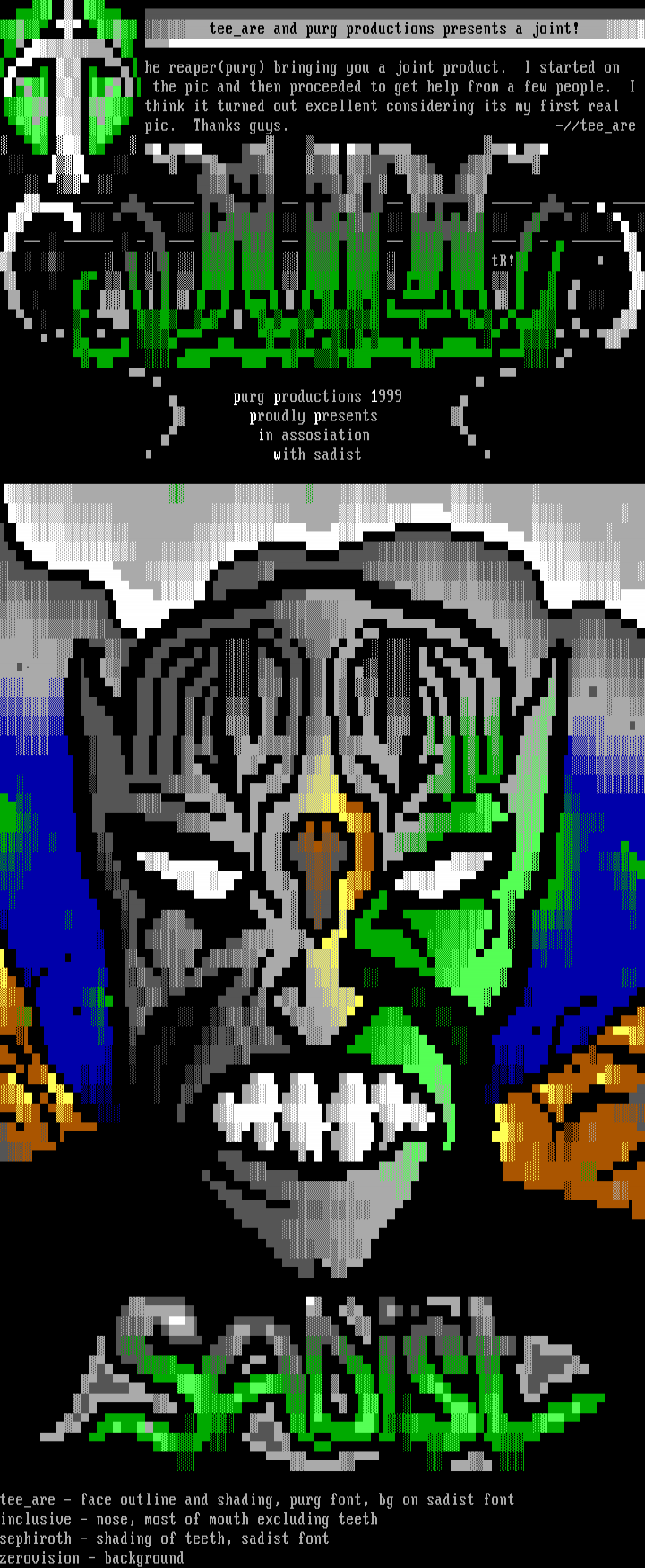 teeare - face outline and shading, purg font, bg on sadist font
