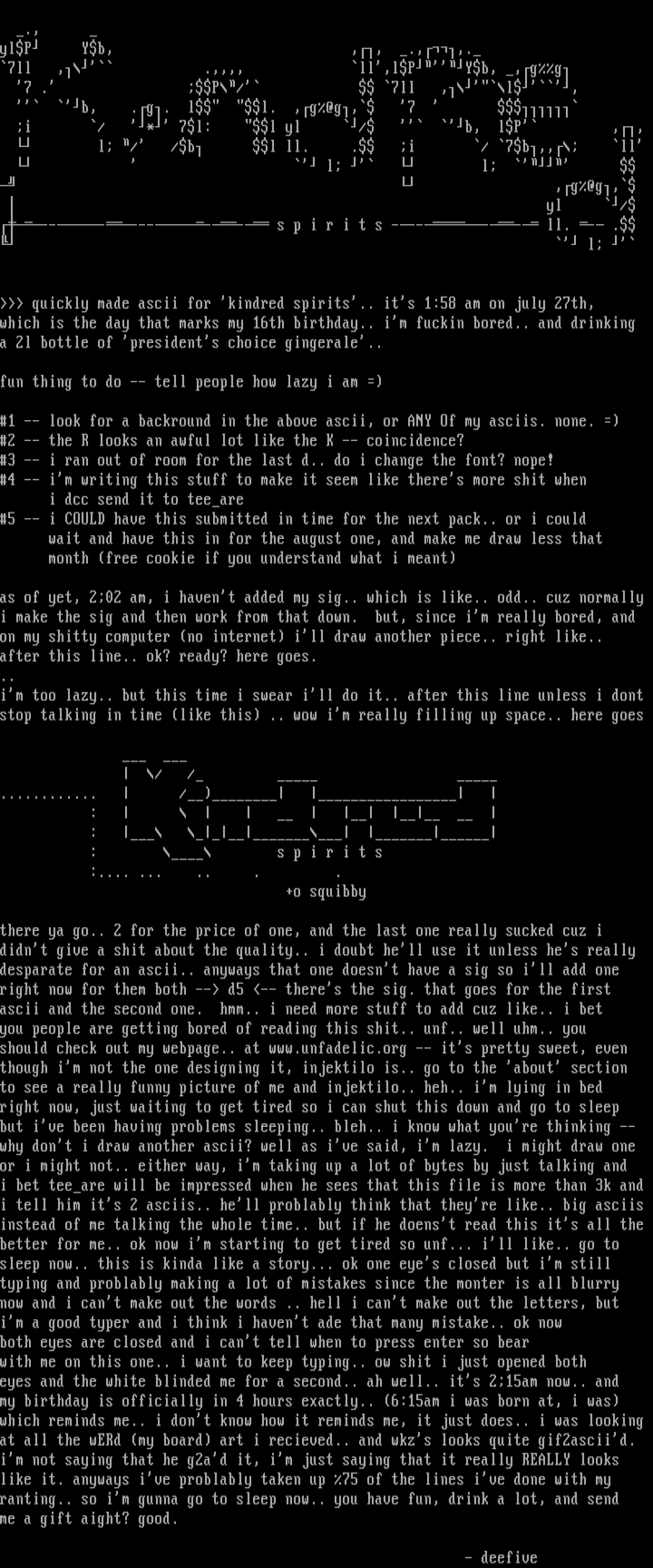 quickly made ascii for kindred spirits.. its 1:58 am on july 27th,