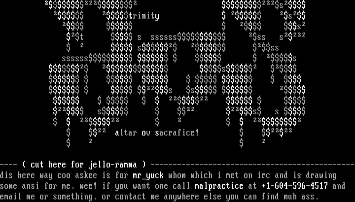 some ansi for me. wee! if you want one call malpractice at +1-604-596-4517 and