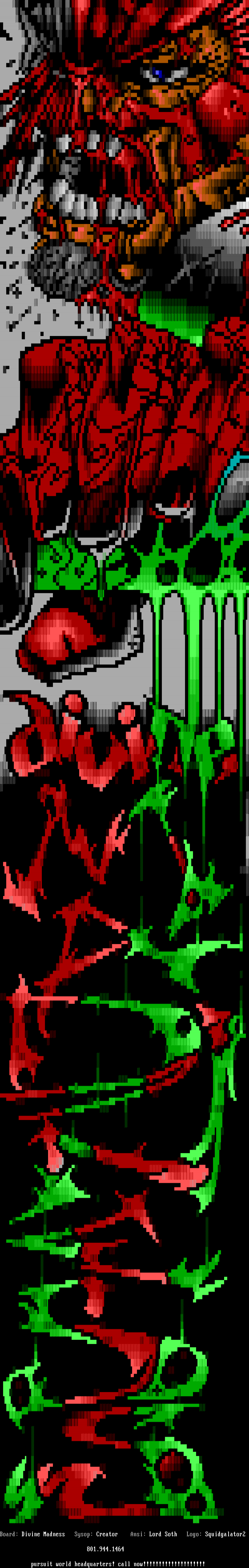 Board: Divine Madness Sysop: Creator Ansi: Lord Soth Logo: Squidgalator2
