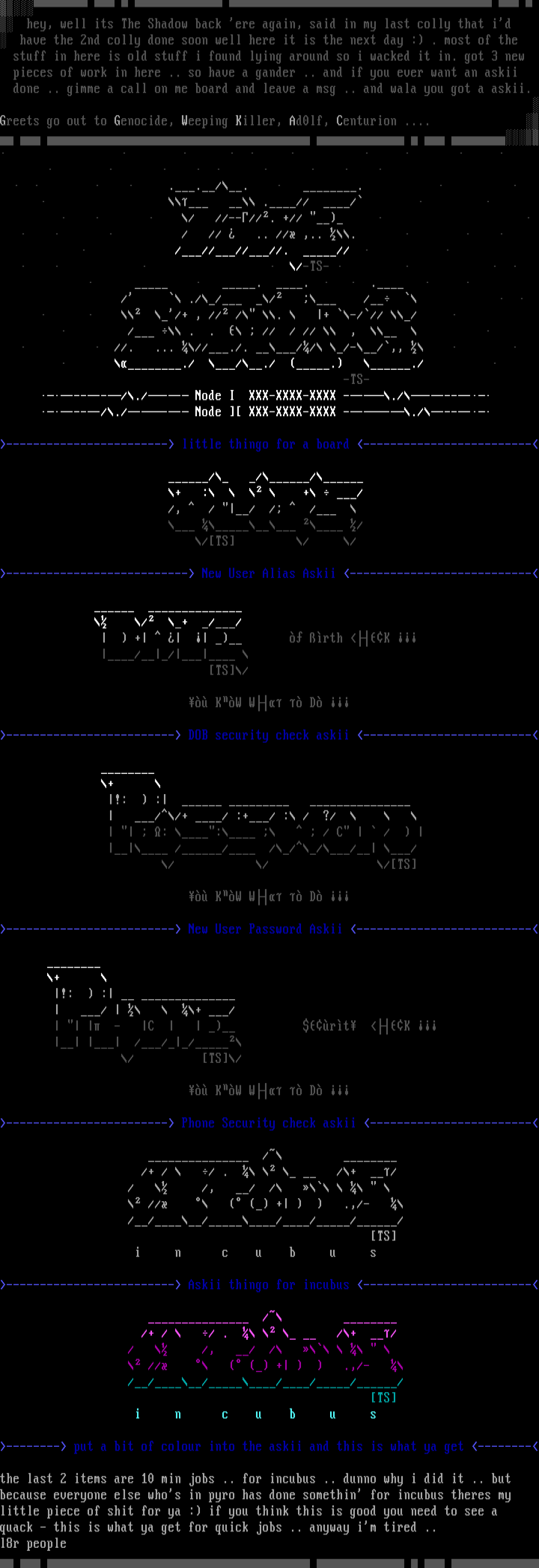 done .. gimme a call on me board and leave a msg .. and wala you got a askii.