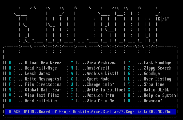 D ....Leech Warez A ....Archive List!! G ....Goodbye E ....Write Messages X ....Xpert Mode L ....User Listing F ....F