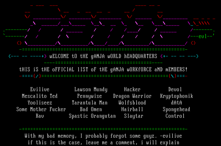 --- -- ----+ wELCOME tO tHE gANJA wORLD hEADQUARTERS +- -- -- ---