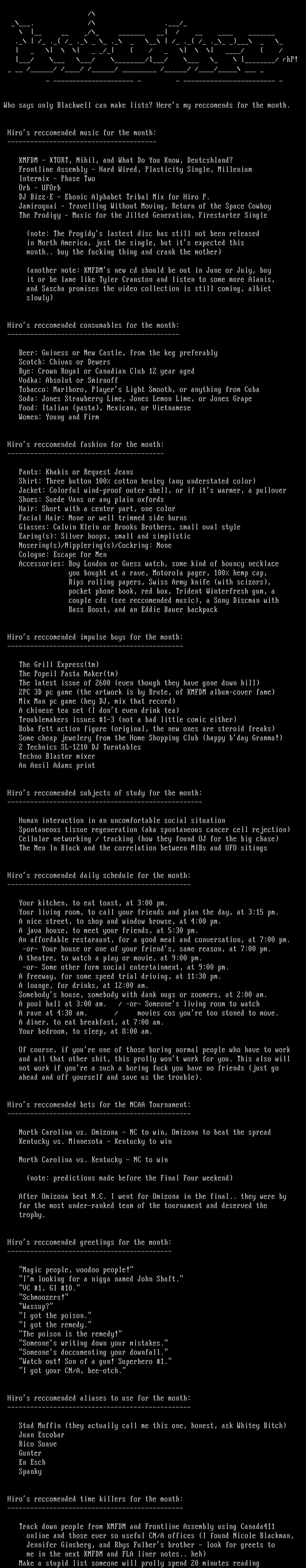 Who says only Blackwell can make lists? Heres my reccomends for the month.