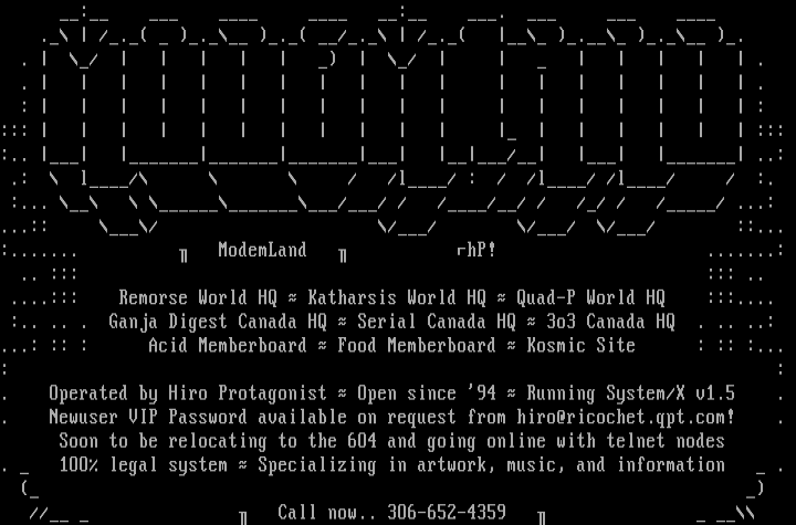 . Operated by Hiro Protagonist Open since 94 Running System/X v1.5 .