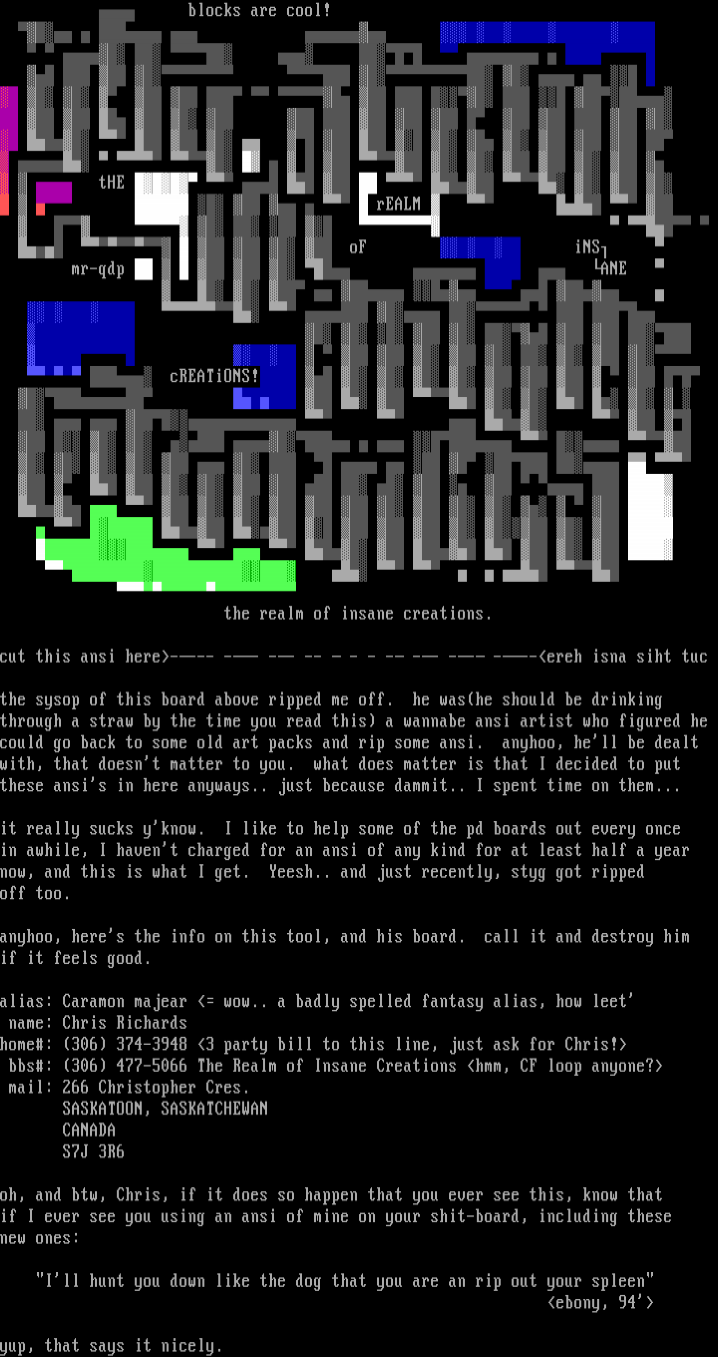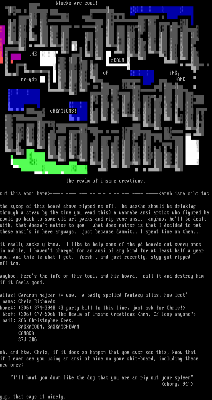 bbs: 306 477-5066 The Realm of Insane Creations hmm, CF loop
