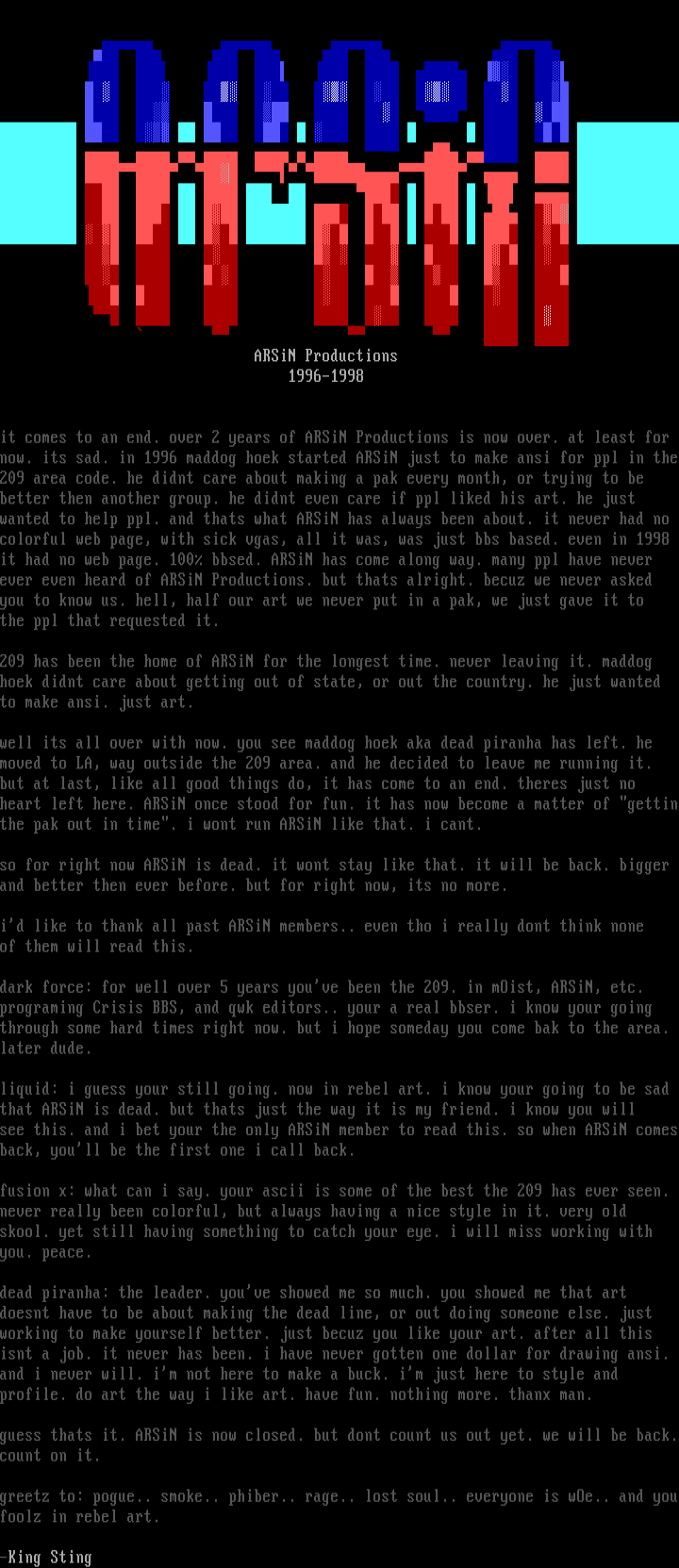 now. its sad. in 1996 maddog hoek started ARSiN just to mak