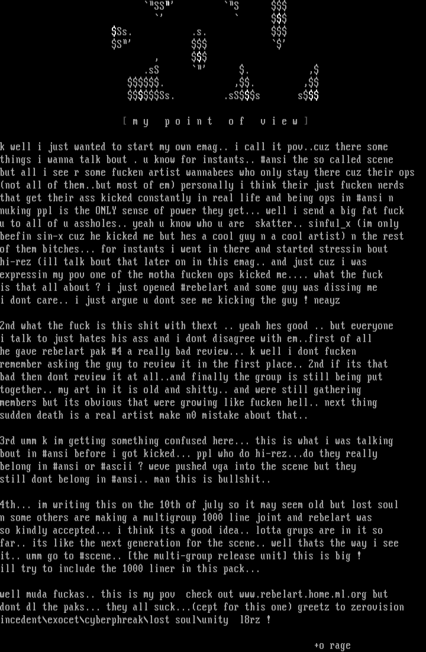well muda fuckas.. this is my pov check out www.rebelart.home.ml.org but