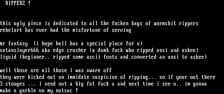 satanslayer666 aka edge crusher a dumb fuck who ripped ansi and askee