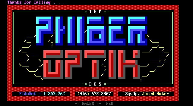 FidoNet - 1:203/762 916 672-2367 SysOp: Jared Huber