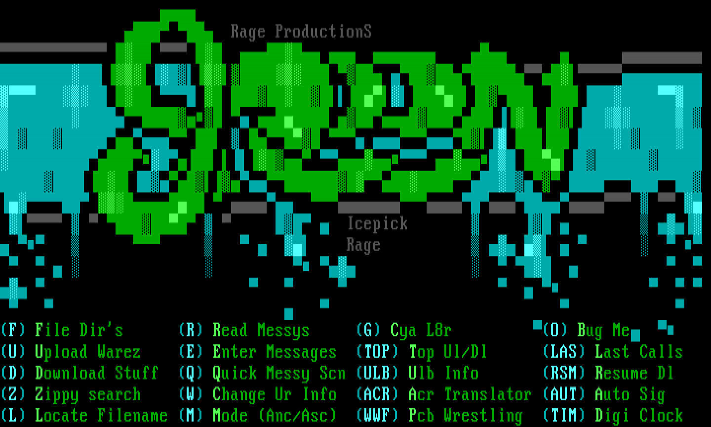 F File Dirs R Read Messys G Cya L8r O Bug Me