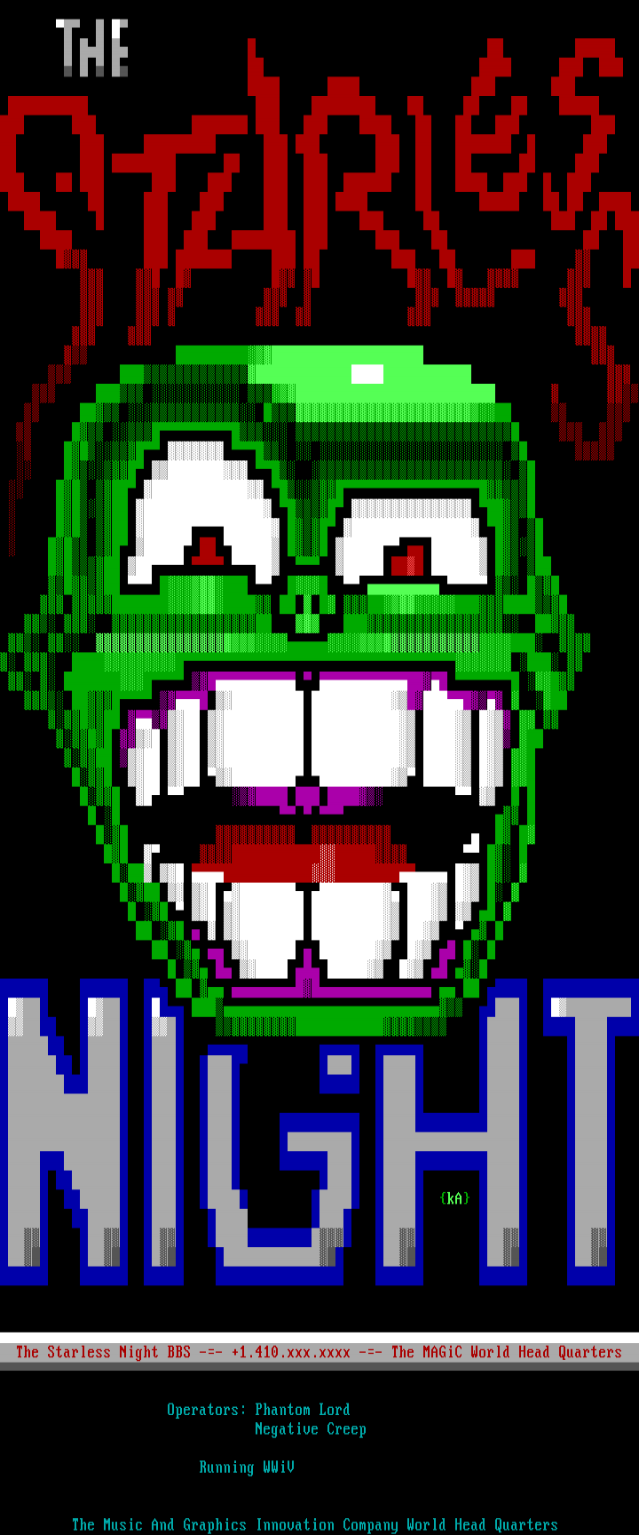 The Starless Night BBS -- +1.410.xxx.xxxx -- The MAGiC World Head Quarters