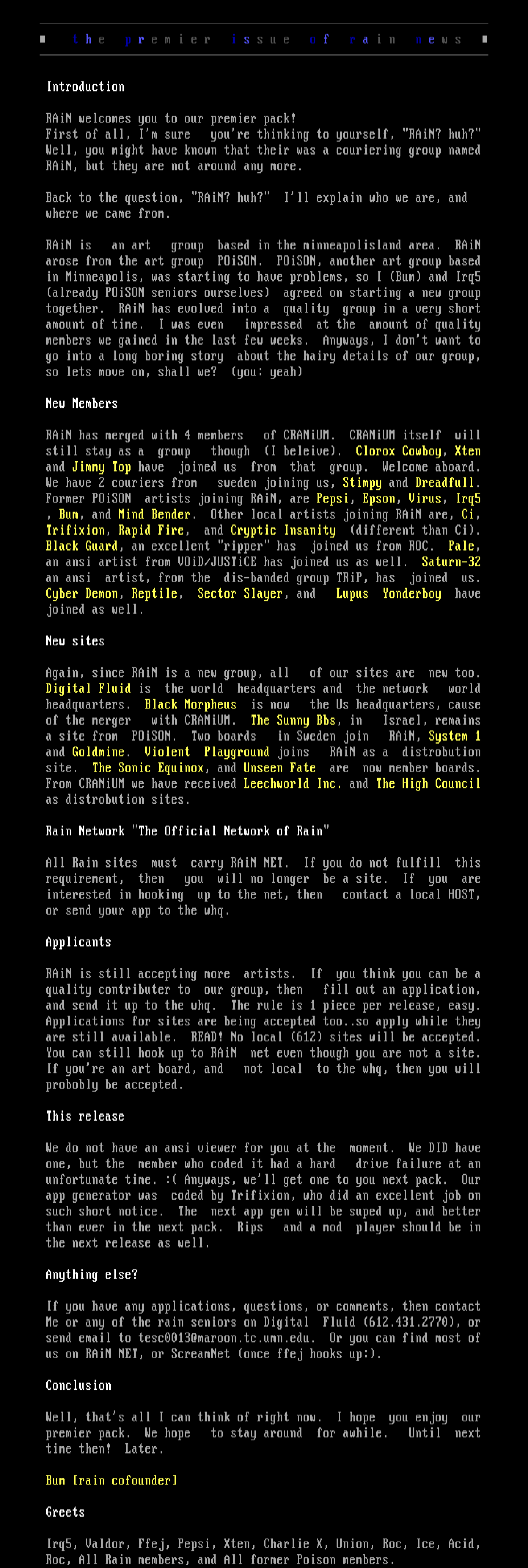 t h e p r e m i e r i s s u e o f r a i n n e w s