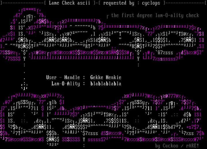 ---------------- Lame Check ascii - requested by : cyclops --------------- ,s***s,