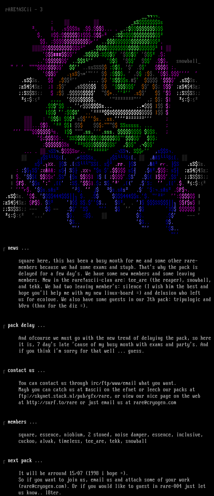 members. New in the rare!ascii-clan are: teeare the reaper, snowball,