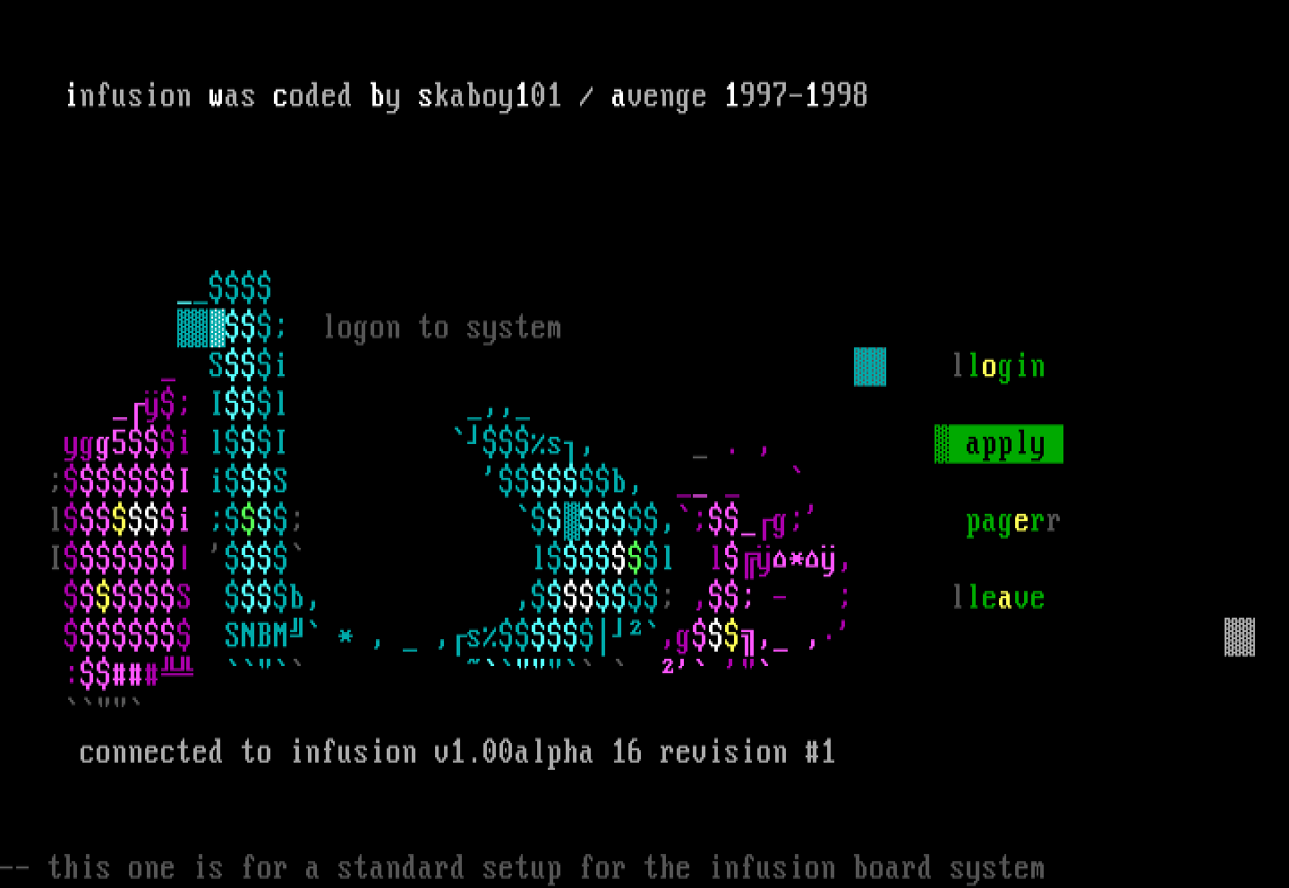 connected to infusion v1.00alpha 16 revision 1