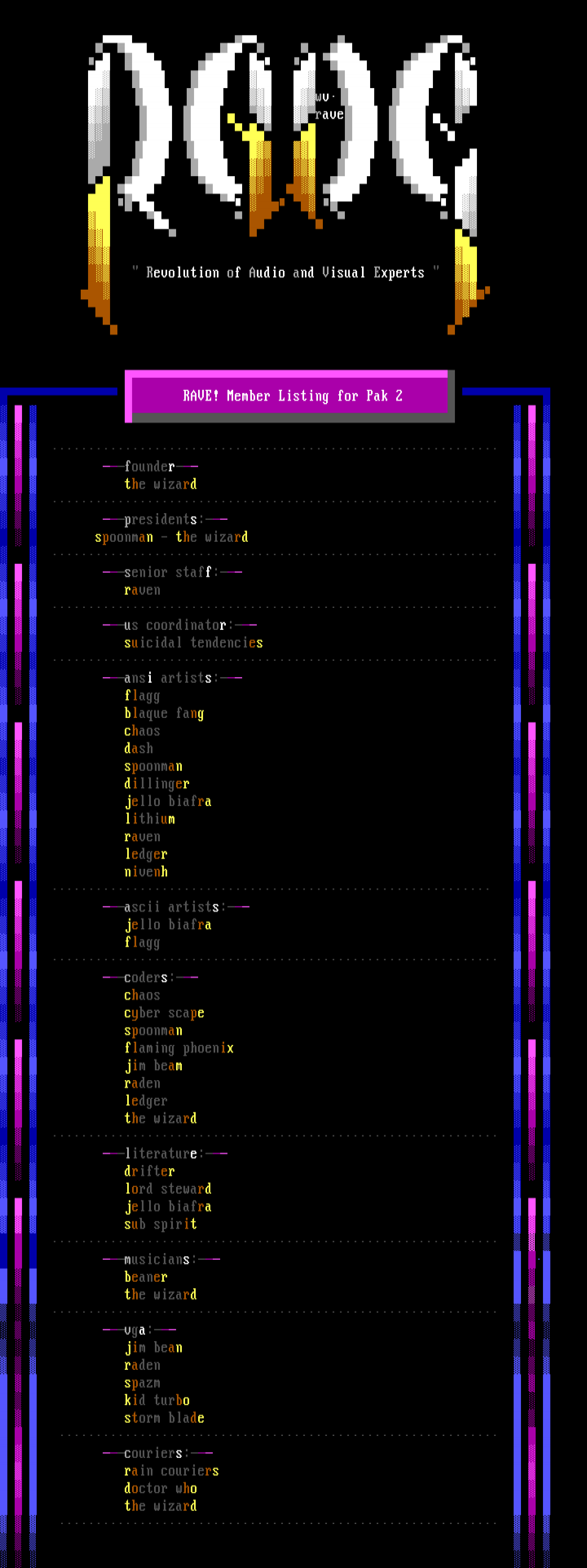 RAVE! Member Listing for Pak 2