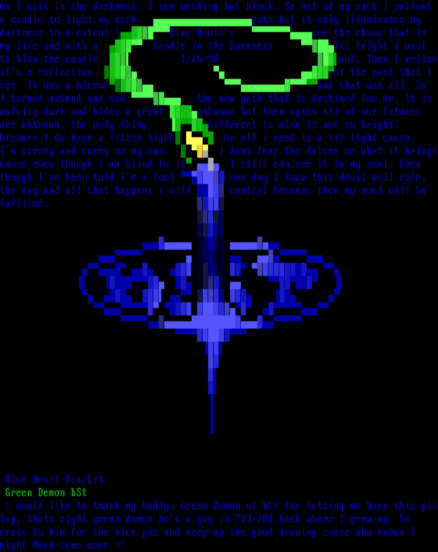 my life and with a Candle in the Darkness lil fright i want to blow the candle 1/26/98 out. Then I relizeits a reflection of the past that I