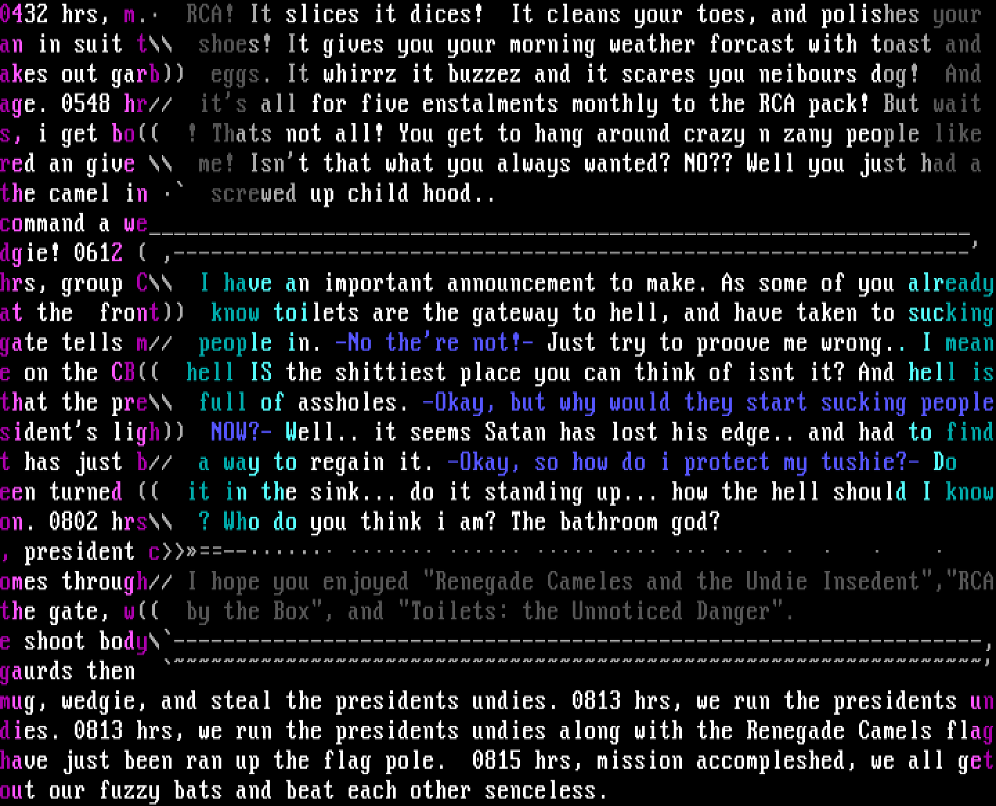 omes through// I hope you enjoyed Renegade Cameles and the Undie Insedent,RCAthe gate, w by the Box, and Toilets: the Unnoticed Danger.